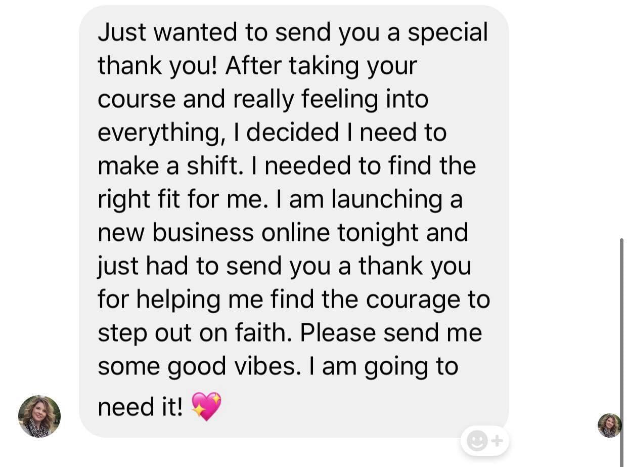 She has learned from some of the world' greatest coaches, like Tony Robbins, Jack Canfield, Lisa Nichols, John Maxwell, Gabrielle Bernstein, David T.S. Wood, Dean Graziosi, Russel Brunson, Grace Lever, Rich and Natasha Hazlett, Chad Thibideaux, Gallup Strengths Finder, and more (aka-there is no self-proclaimed rookie stuff...you're in good expert hands with her).